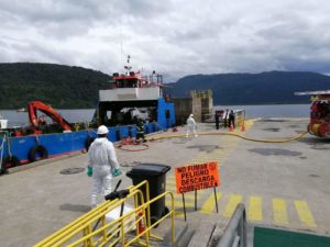 La maniobra se desarrollará en el sitio n° 2 de la citada infraestructura portuaria, e iniciará cuando la barcaza “Corcovado II”, de propiedad de la empresa Aquachile, simule una filtración y derrame de hidrocarburos al realizar faenas de “rancho de combustible”.